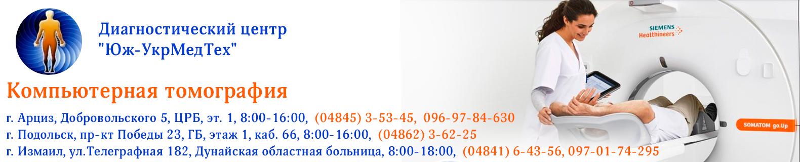 Усі дослідження проводяться на комп'ютерному томографі експерт класу Siemens Somatom go.Up. Даний апарат дозволяє виконувати сканування з низьким променевим навантаженням, при цьому отримувати зображення високої якості.